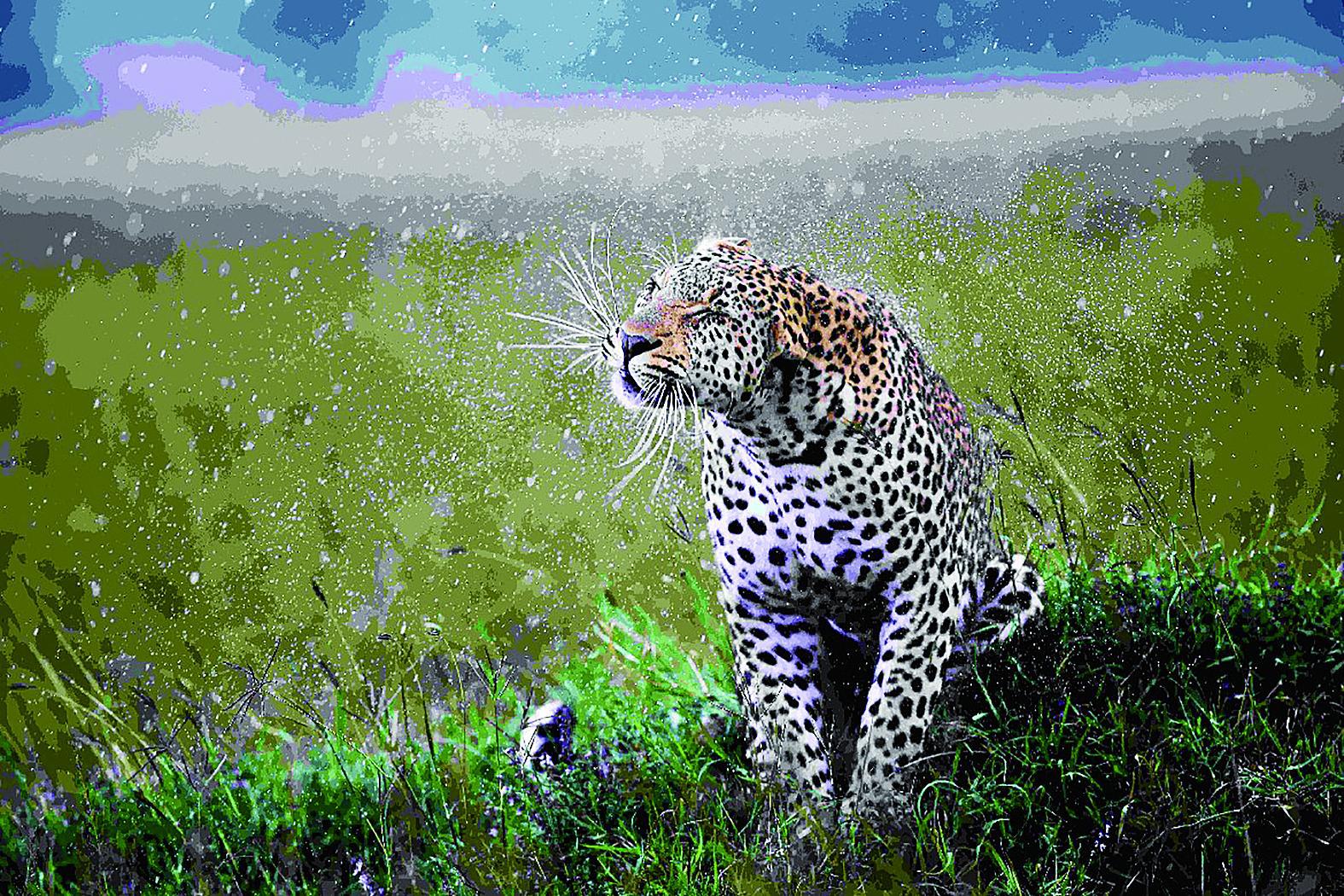 肯尼亚马赛马拉大草原上,一只名叫“缺耳朵”的公花豹猛地甩头,水珠四溅——它似乎还没从一场骤雨中回过神来。快门声轻响,瞬间定格——这张名为《不要再下雨了》的照片,在今年9月底为它的拍摄者袁林赢得了2025“一带一路”中国-非洲摄影大赛非洲野生动物类铜奖。