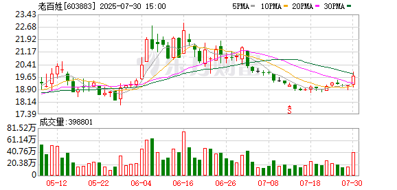 证券时报·数据宝统计显示,老百姓今日收盘价为19.69元,上涨2.93%,日换手率为5.26%,成交额为7.79亿元,全天主力资金净流入5423.48万元,近5日该股累计上涨3.25%,近5日资金合计净流入1972.08万元。